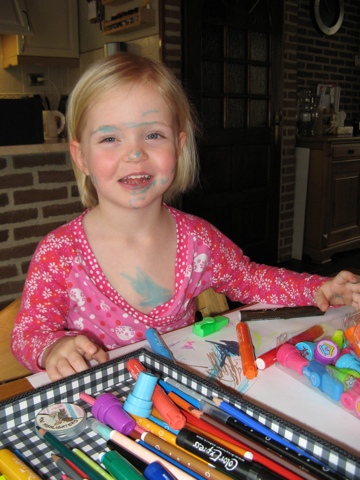 Carice heeft duidelijk dezelfde voorkeur voor de kleur blauw als haar opa. Of wilde zij zich vermommen als de ijsvogel, mijn grote liefde?
