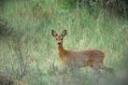 Toen vond blijkbaar de ree het genoeg, hij spotte onze hond, en maakte zich met een aantal prachtige sierlijke sprongen uit de voeten. Wat kan zo’n beest gracieus een grasvlakte over dartelen. Prachtig. Onze hond, was druk met zijn stok aan het slepen, en heeft hem door het net iets te hoge gras(gelukkig) nooit gezien. En een jachtinstinct zit er ook niet in hoor. Het deed mij goed om te zien, hoe ontspannen zo’n ree nog kan bestaan in ons Brabantse landschap. Prachtig. Overigens kom je wat schuwere dieren als een ree hooguit heel erg vroeg in de ochtend tegen, of s’avonds in de uren als het gaat schemeren, zoals in dit geval. Voor mij blijven het altijd mooie momenten, waarop je jezelf één mag voelen met moeder natuur.