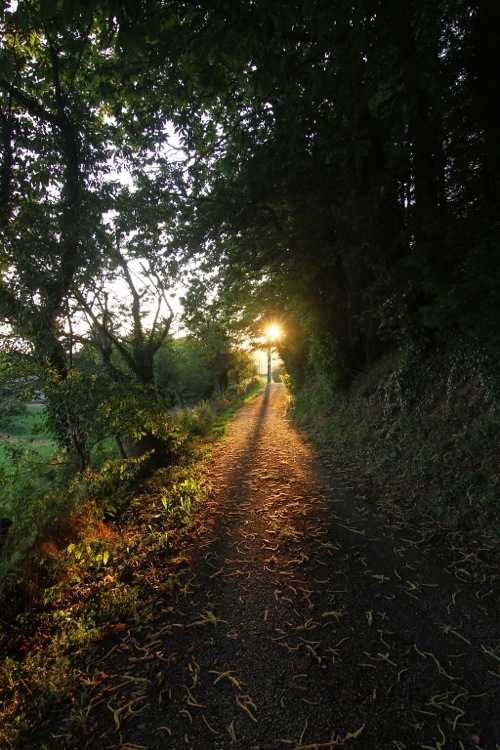 De 16 foto’s uit het vorige vakantieverslag waren gemaakt met de iPad. Handig om te kunnen bloggen maar foto-technisch geen kunstwerken. Voor het echte fotowerk moet je toch een professionele camera hebben. Zoals Edwin. Hij heeft bijgaande foto gemaakt, op het prachtige toegangsweggetje naar onze boerderij. Vlak voor de zon onderging. Prachtig avondlicht. De foto geeft de indruk dat er een gigantische lantarenpaal staat. Dit is echter een oude telefoonpaal, die de ondergaande zon even lijkt te ondersteunen.